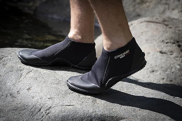 - Cressi Ibiza 3 mm, Black/Black, 3 mm, 8 offers reliable performance and quality- The Ibiza 3mm are lightweight boots ideal for outdoor sports and travel- Made with Super Elastic Neoprene for best comfort within the sole, it is built to provide extra comfort, and is also ultra durable- The back of the heel has a special design that fits perfectly with open heel fins for scuba diving. The small boss is used to prevent the slipping of the fins strap