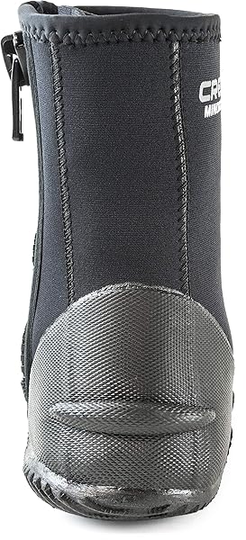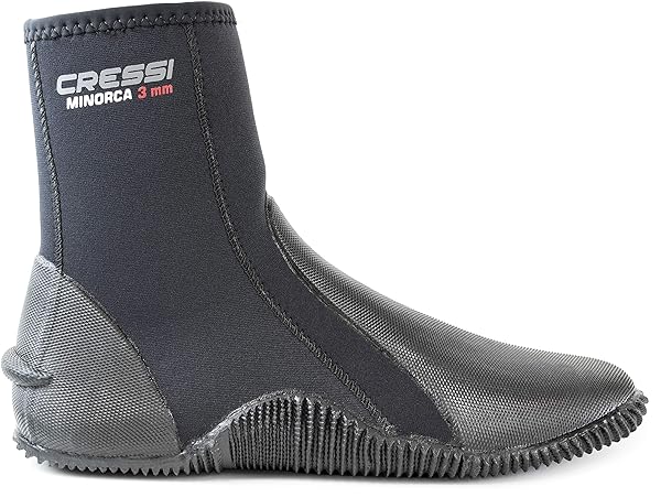- Cressi Minorca Long 3 mm Crew Diving Boots, Black/Black, US Man's 8 US Ladies' 9 offers reliable performance and quality- 3 mm Neoprene ultra durable tall boots with anti-slip sole ideal for any water sport, snorkeling, scuba diving, free diving, swimming, canoeing- Rubber heel and toe cap for added strength and durability- Super elastic and ultra durable Nylon ll Neoprene- Zipper closure for ease of donning and doffing