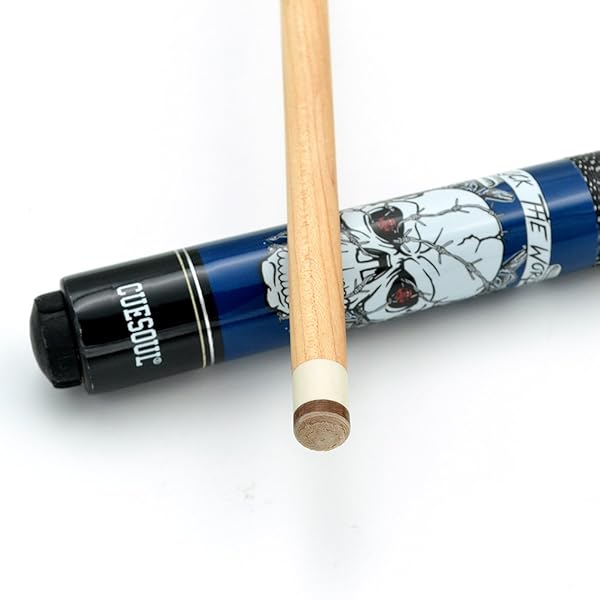 - CUESOUL 58 inch 20oz 1/2 Maple Pool Cue Stick Kit- Rock The World Stylish Pattern Cue Design in Blue Paint offers reliable performance and quality- Hand Selected North Canadian Hard Maple Wood Material Butt and Shafts- Stainless steel joint M/18- Kit also includes Joint Protectors,1 piece billiard towel,1 blue carrying cue bag- 13mm Leather Tip for Ultimate Ball Control