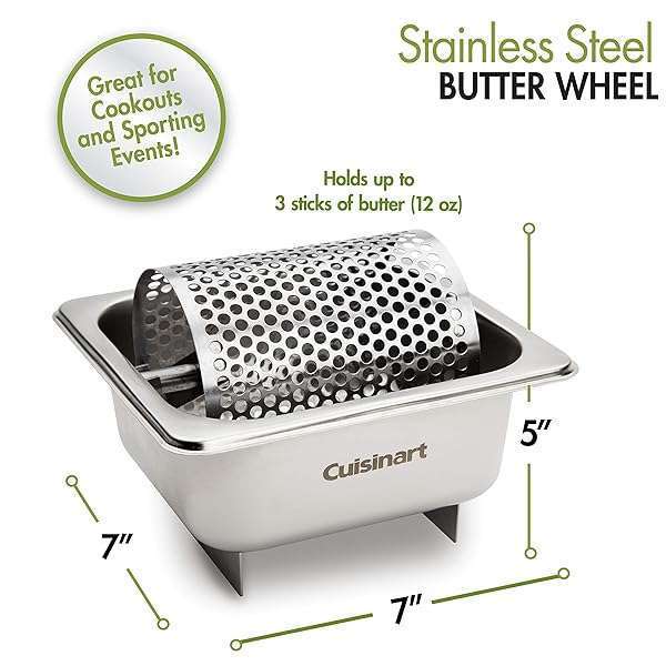 - Cuisinart Stainless Steel Butter Wheel, Raised Bottom Butter Roller for Griddle for Golden Crust and Even Spread, Kitchen Grill Accessory for Burgers, Bread, BBQ, Cookouts, Tailgates offers reliable performance and quality- FAST & EVEN BUTTERING: Coat bread, buns, and rolls quickly with smooth, consistent butter coverage- GOLDEN CRISP: Toasting in butter achieves an irresistible crispy, golden crust that enhances flavor and texture