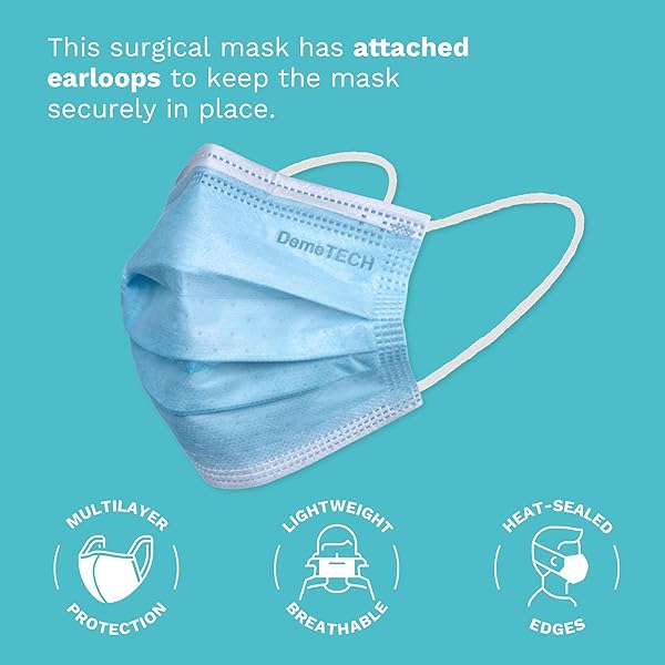 * DEMETECH ASTM Level 3 Disposable Face Masks, Protective Face Mask Pack with 3 Layers, Adult, 50 Qty: high-quality face mask: at demetech * Your safety is our top priority * Our ASTM level 3 mask is available in small and adult sizes and is created with high-quality materials * This ear-loop face mask slides over your ears to secure the mask to your face * 3 LAYERS OF PROTECTION: Our ASTM face mask is made of 3 highly protective layers of material