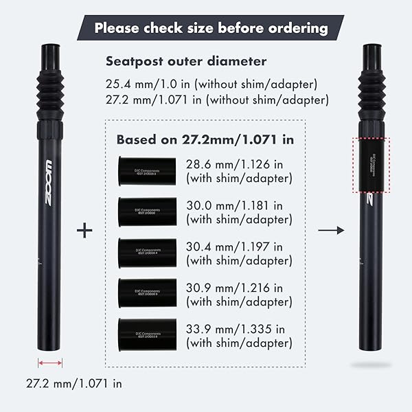 - DJC Suspension Seatpost Straight Pillar Headless Bike Seat Post Shock Absorber for City Bike MTB 25.4 27.2 28.6 30.4 30.9 31.6mm(28.6mm Black) offers reliable performance and quality- No Clamp, Diameter Attention: This seatpost does not include a clamp and is suitable for city bike saddles with clamps. Ensure you select the correct diameter as specified. Incorrect sizing will prevent proper installation