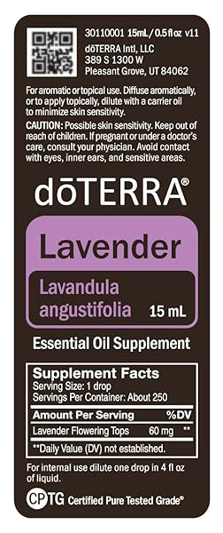 * doTERRA Lavender Essential Oil - 15 ml (Lavender): widely used for its calming and relaxing qualities * Soothes occasional skin irritations * Helps skin recover quickly * Eases muscle tension in the head and neck * Reliable performance