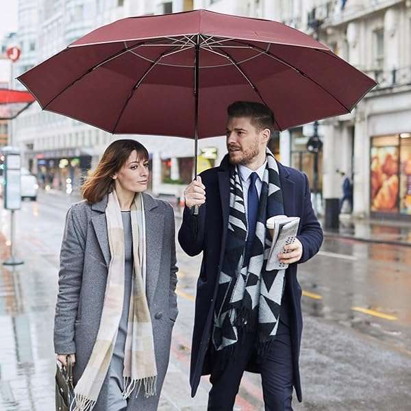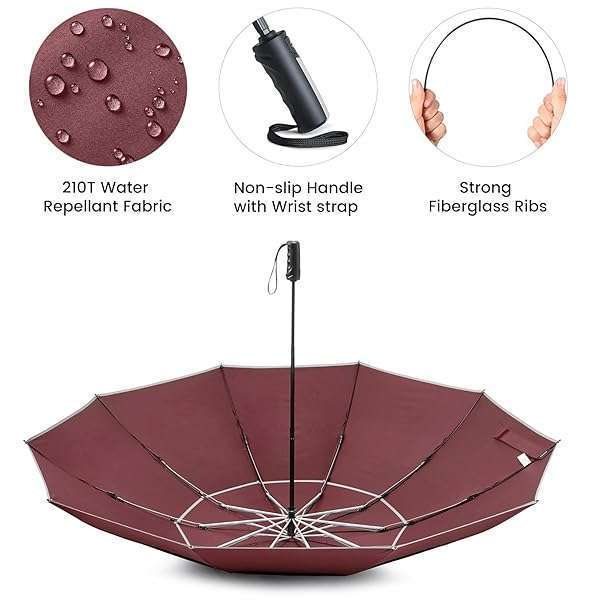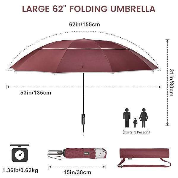 - G4Free 62 Inch Windproof Inverted Umbrella with Reflective Stripe Large Compact Reverse Golf Umbrella for Rain 10 Ribs Double Canopy Travel Umbrella Automatic Open Close (Burgundy) offers reliable performance and quality