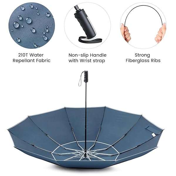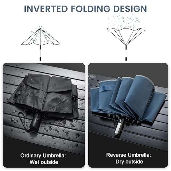 - G4Free 62 Inch Windproof Inverted Umbrella with Reflective Stripe Large Compact Reverse Golf Umbrella for Rain 10 Ribs Double Canopy Travel Umbrella Automatic Open Close (Blue) offers reliable performance and quality