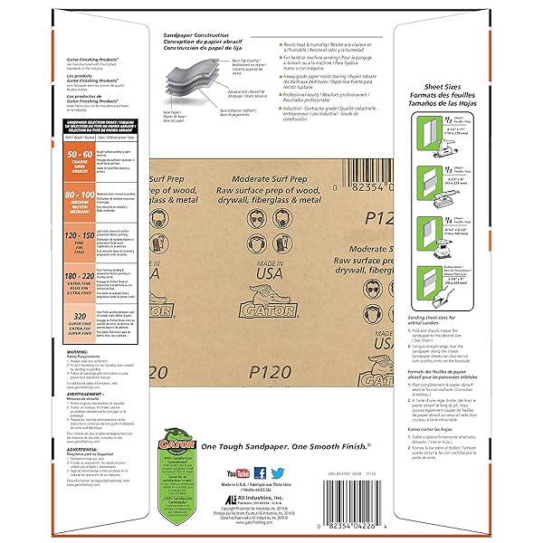 * Gator 9" x 11" Bare Wood Sanding Sheets, 120 Grit, 25 Pack: product description * These bare wood sandpaper sheets are specifically designed to sand and prepare bare wood surfaces * These sanding sheets will make your next woodworking project a total success * Ideal for working on wood * Furniture