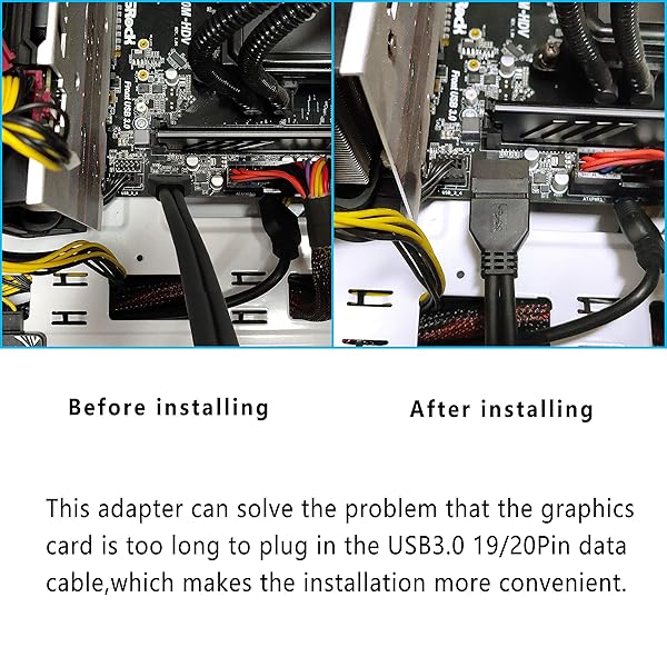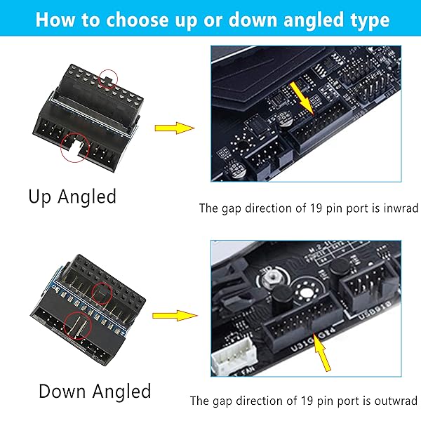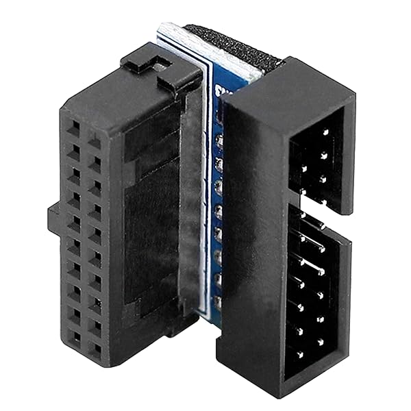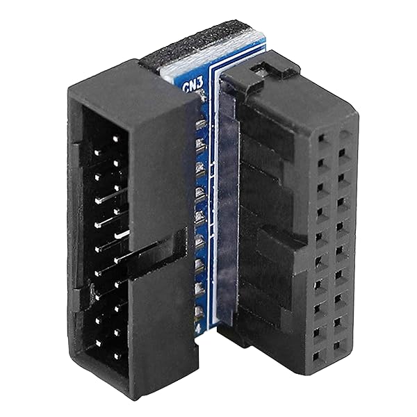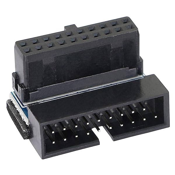 * GELRHONR Right Angled USB 3.0 20-pin Male to Female Extension Adapter, Desktop Motherboard 90 Degree Angled USB 3.0 19-Pin Motherboard Internal Header-Black 2PCS: usb 3.0 20-pin male to female extension adapter * Suitable for changing the installing direction of USB 3.0 20 pin/19 pin cables with the 90-degree L-Turn DOWN Angled adapter.By allowing the USB 3.0 20 pin/19 pin cable to be installed at a 90 degree angle * Builders are no longer need to wrap or fold the cable up and back over the