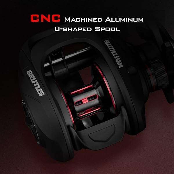 * KastKing Brutus Baitcasting Fishing Reel, 7.2:1 Gear Ratio, Left Handed: angler proven components brutus features one-piece rigid graphite frame * Lightweight graphite side plates that can deliver reliable performance and durability for long life * KastKing Brutus has a CNC aluminum U-Shaped spool for more line capacity * A solid aluminum handle for strength * And non-slip rubber paddles for all day fishing comfort