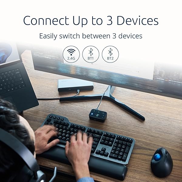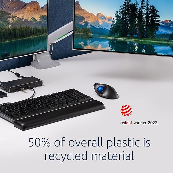 * Kensington TB450 Wireless Trackball Mouse, Bluetooth LE & 2.4GHz Connection, 4 DPI Options, Connect up to 3 Devices (K72194WW), Black-Blue: the pro fit ergo tb450 trackball brings the familiar feel of a mouse to a simple-to-use wireless trackball with a unique ergonomic design * It includes Bluetooth Low Energy (LE) and 2.4GHz wireless connection options for maximum flexibility * And 50% of overall plastic is recycled material * The Pro Fit Ergo TB450 also features long battery life * Patented