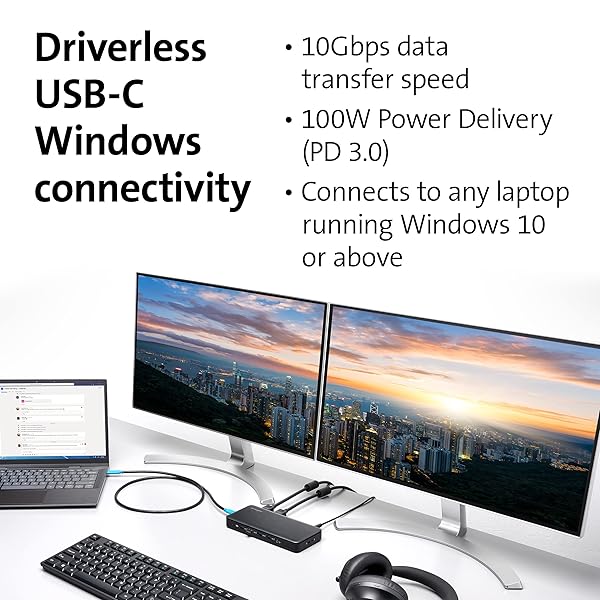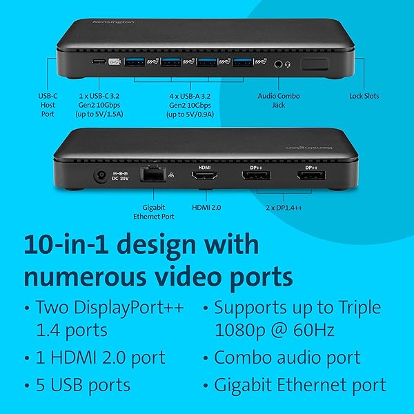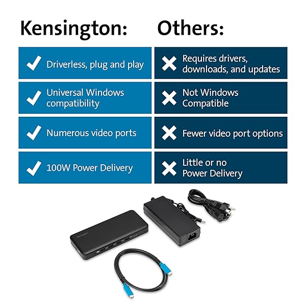 * Kensington Triple Display USB-C Docking Station with 100W PD for Dell, HP, Lenovo, Acer, ASUS, Razer, Surface (Black): if youre looking for a driverless usb-c docking solution that offers triple video * 100W Power delivery * And data transfer speeds up to 10Gbps * Then this docking station is for you * Simply connect it to any USB-C laptop running Windows 10 or later