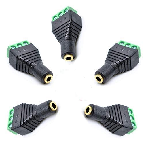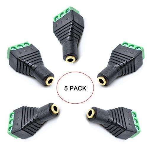 - Kework 3.5mm 3 Pole Female Jack to 3-Screw Green Terminal Audio Adapter offers reliable performance and quality- These 3.5mm audio adapter use for microphone, earphone, audio video AV PC. It is more convenient to use more quickly without welding- This 3.5mm to screw terminal audio adapter connecting single wires with open cable heads to your 3.5mm jack