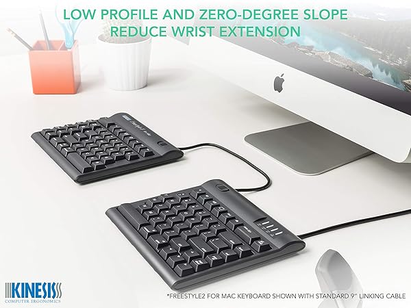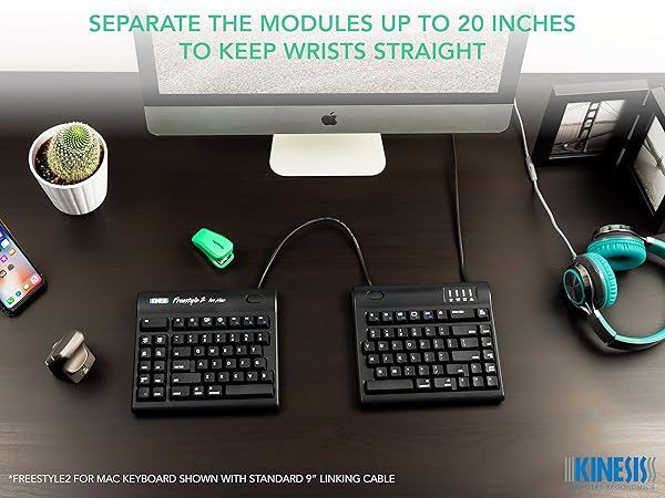 - Kinesis USB Freestyle2 Keyboard for Mac (20" Extended Separation) provides reliable performance and quality- AWARD-WINNING SPLIT DESIGN: Unlike fixed ergonomic keyboards, the Freestyle2 allows you to rotate and separate the key modules up to 20" to achieve natural hand, wrist and forearm positions for you...