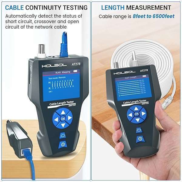 - Network Cable Tester and Tracker, KOLSOL AT278 NF-8601S TDR Multifunction LCD LAN Ethernet Poe Cable Tester for RJ45/RJ11/BNC/Metal Cable - PING/POE Wire Tracker for Length & Distance to Fault Testing offers reliable performance and quality