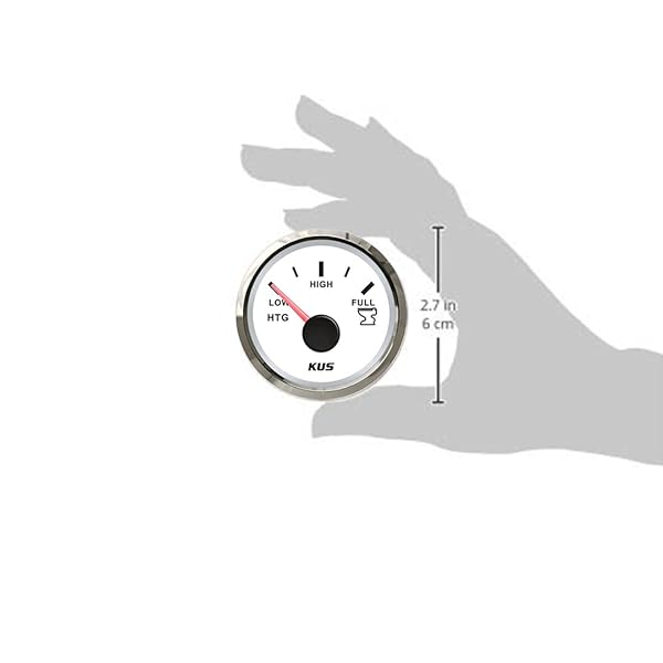 - KUS CPGR-WW, 240-33 Ohm, Electric Holding Tank Level Gauge, 12V / 24V, 2" (52mm) with Backlight offers reliable performance and quality- Face plate: white | bezel: white plastic | either Red or Yellow LED backlight- Ip67 protection rating for the whole gauge- Signal:240-33 | indicating range: empty-full- Mounting size: 2 1/16 inch , or 52mm