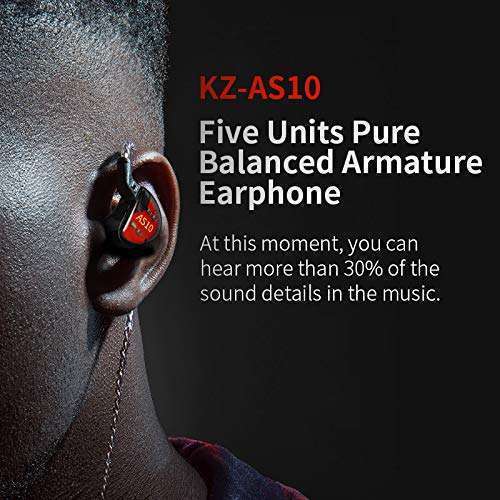 - KZ AS10 IEM Headphone, 5 Balanced Armature Driver KZ Earbuds Wired Earphone, Stereo HiFi in Ear Monitor Headphone Musician Headset Earphone with Detachable 2 Pin Cable(No Microphone, Black) provide...- 5 Balanced Armature Driver KZ AS10 Earphone Equipped with 5 balanced armature driver on this KZ in ear monitors, 5 balanced armature response from Low to High frequency for music, add more definiti...