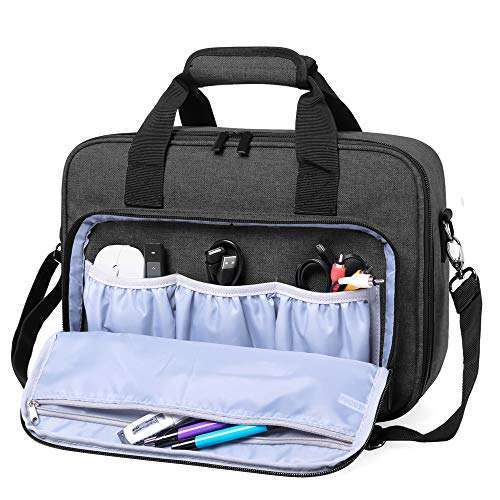 * LUXJA Projector Case, Projector Bag with Protective Laptop Sleeve, Projector Carrying Case with Accessories Pockets, Large(16 x 11.5 x 5.75 Inches), Black: protective: made of heavy-duty nylon * Thick padding sandwiched between layers of material * Which protects your projector and accessories well * MAIN STORAGE SECTION: The main compartment has enough space to store machine and cables so the machine can be better protected * There is also an inner large padded sleeve (15.5" x 11.25") for