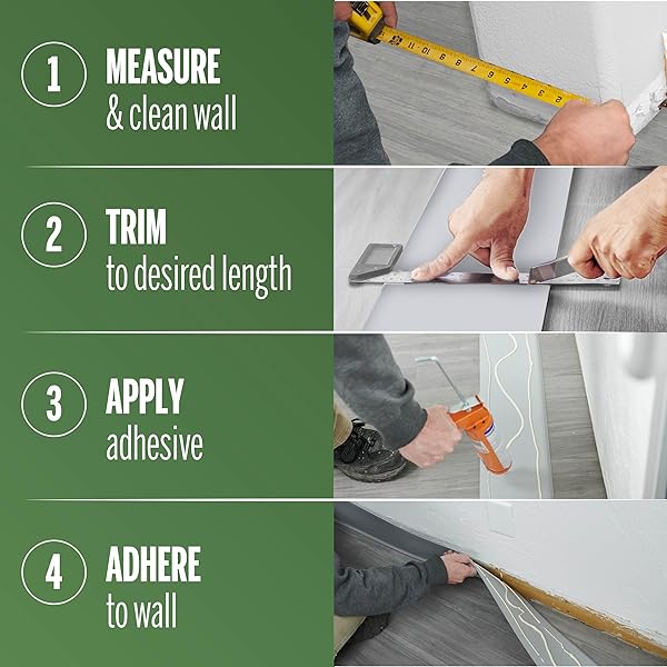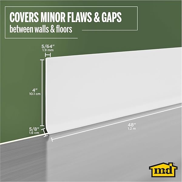 * M-D Building Products 4-Inch x 4-Feet Dry Back Vinyl Wall Base, Flexible Dry Back Vinyl Trim with Toe - Easy Install Molding Trim for Floors and Baseboards, White (75317): elevate your space with a polished finish: enhance the look of your walls and baseboards with the m-d building products dry back vinyl wall base * This cove base adds a touch of elegance to any room and is available in a range of finishes to complement any decor style * Premium Vinyl Trim Molding: Our vinyl trim molding is