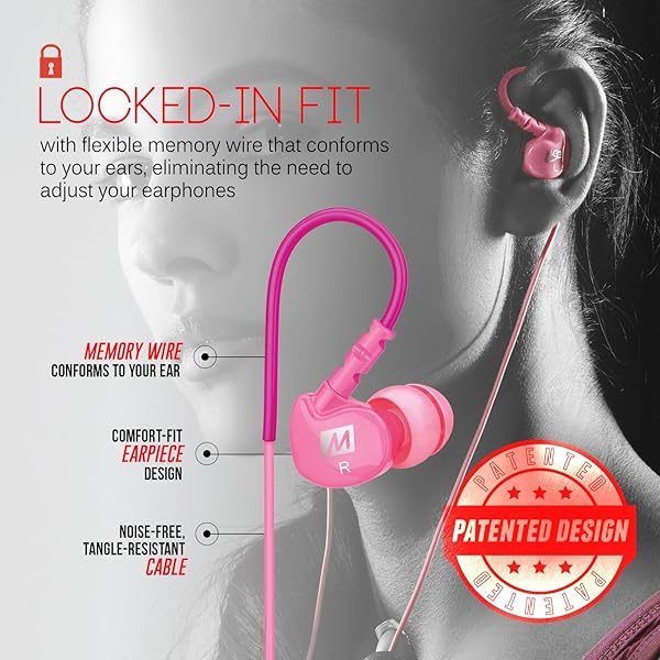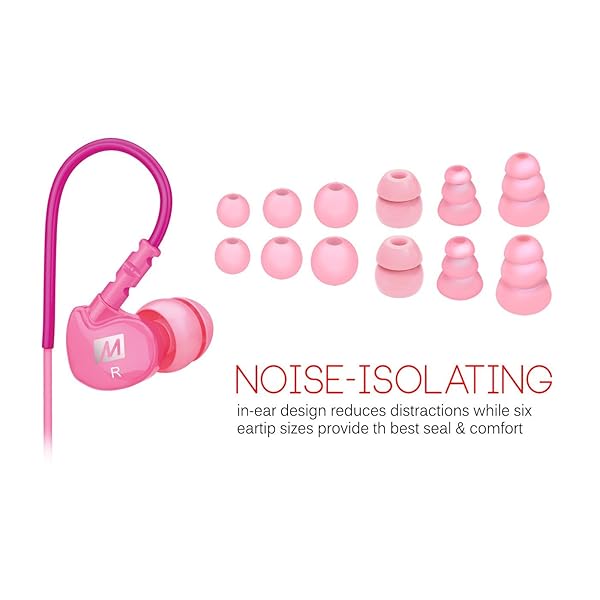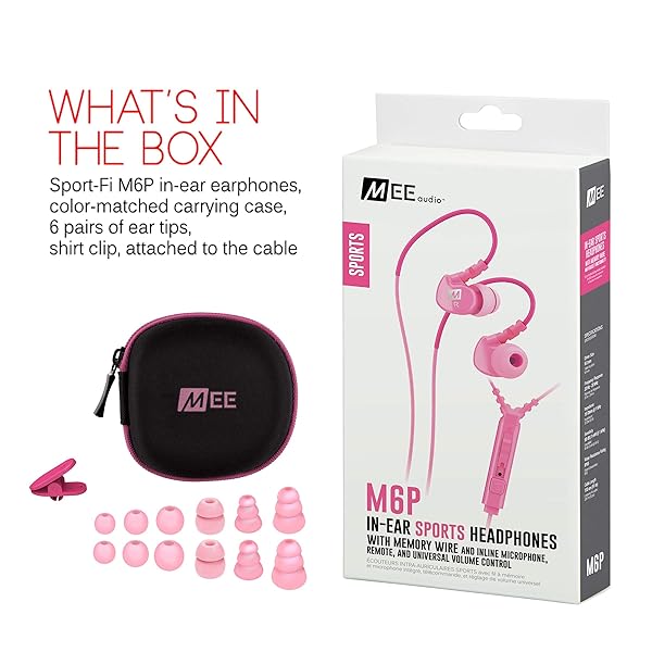 - MEE audio Sport-Fi M6P Memory Wire In-Ear Headphones with Microphone, Remote, and Universal Volume Control (Pink) offers reliable performance and quality- Secure over-the-ear fit with memory wire never falls out- Noise isolating in-ear design with energetic sound and enhanced bass- Inline microphone, remote, and universal volume control for headset use- Certified IPX5 sweat- and water-resistant for increased durability