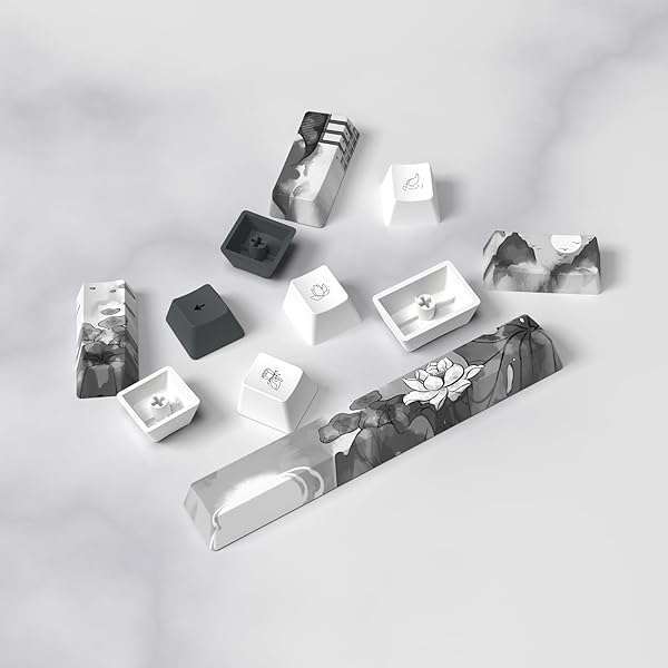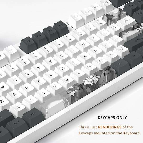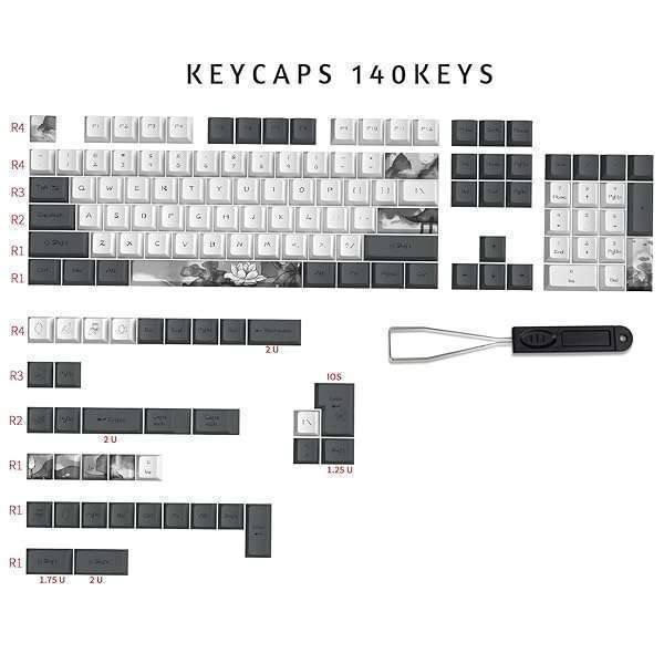 * MOLGRIA Ink Lotus Custom Keycaps, 140 Set PBT OEM Profile Dye Sublimation ANSI/ISO Layout with Keycap Puller for Gaming Keyboard: durablemade from pbt materials with ergonomic ladder design and oem profile * Its anti-grease to ensure better using experience * UNIQUEThe 124 keyboard keycaps with Chinese Ink Lotus themewe call the theme Ink Lotus * It's very unique and beautiful for your keyboard * ARTWORKWith thermal sublimation process