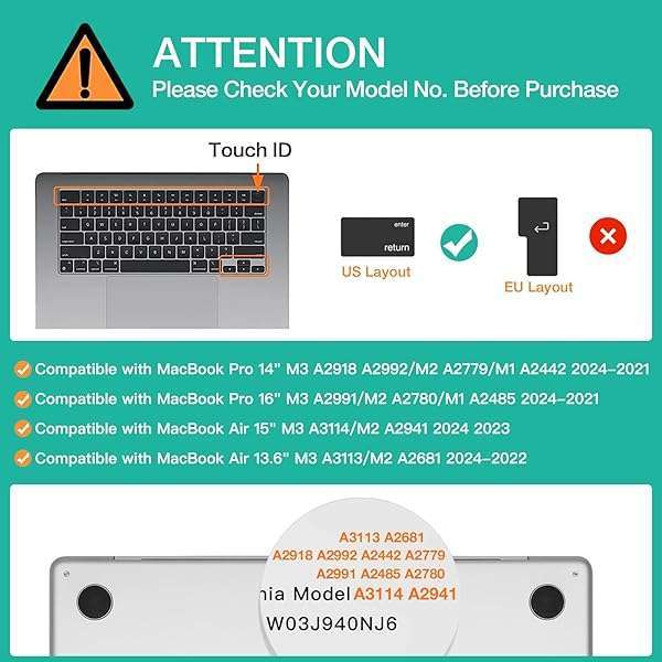 - MOSISO Keyboard Cover Skin Compatible with MacBook Air 15 inch M3 A3114 M2 A2941/Air 13.6 A3113 A2681/Pro 14/16 M4 M3 M2 M1, Deep Teal provides reliable performance and quality- Designed ONLY to be compatible with MacBook Air 15 inch M3 M2 chip 2025 2024 2023 (model: A3114 / A2941) & compatible with MacBook Air 13.6 inch M3 M2 chip 2022-2025 (model: A3113 / A2681) & compat...- Designed for US keyboard layout.