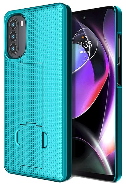 Buy Moto G 5G (2022) Case with Clip & Kickstand - Slim Hard Shell Cover & Belt Holster Combo in Teal Aqua Mint