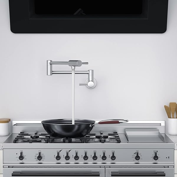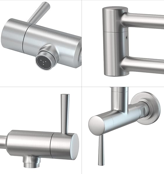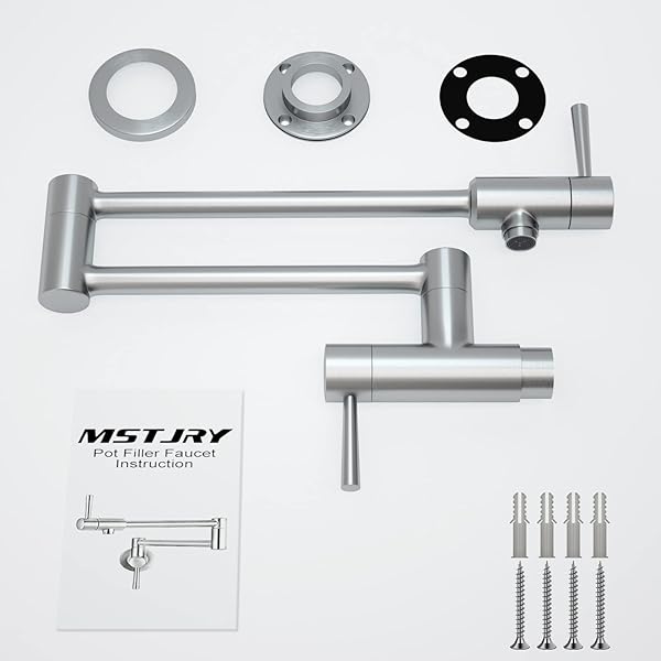 - MSTJRY Brushed Pot Filler Faucet Wall Mount Commercial Kitchen Faucets Stainless Steel Stretchable Double Joint Swing Arm Single Hole Two Handle Kitchen Stove Faucet offers reliable performance and quality- Pot Filler Faucet Wall Mount Adds Water Into Pots While on Your Stove Or Cooktop Conveniently. Brushed Stainless Color is Same Closely to Your Range Hood