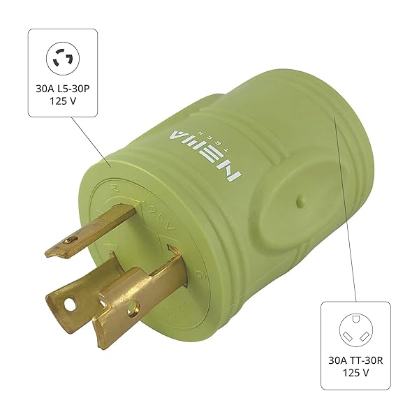 * NemaTech NEMA 3-Prong Generator to 30Amp RV Adapter, L5-30P Male to TT-30R Female 30A/30A Compact Locking Generator Converter: industrial grade * Built with quality components for both compact design and maximum durability in a well constructed housing * SAFETY FIRST * Do not exceed the listed rated power and current and only use suitable cables and connectors * WEATHER PROOF