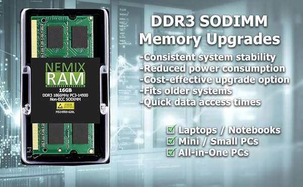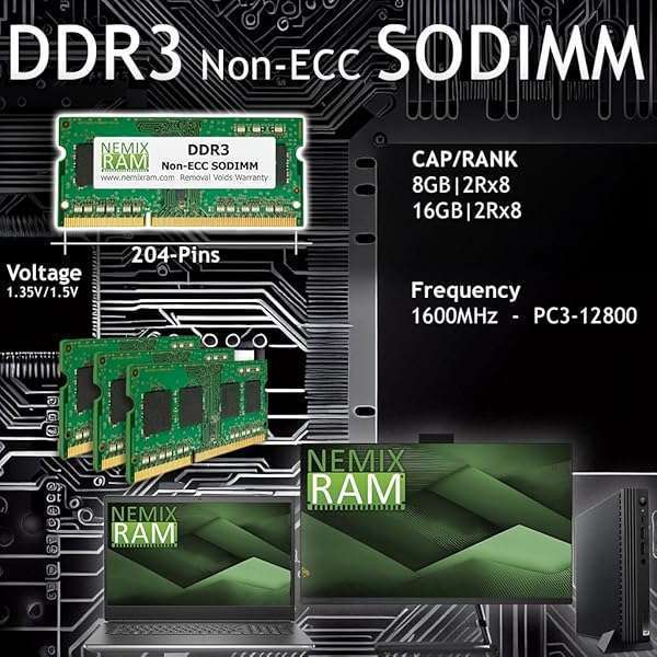 - NEMIX RAM 16GB (2X8GB) DDR3 1600MHZ PC3-12800 2Rx8 1.35V 204-PIN Non-ECC SODIMM Laptop PC PC Unbuffered Memory KIT provides reliable performance and quality- NEMIX RAM is a Distributor and Manufacturer of Computer Memory and Storage Upgrades. Specializing in Enterprise Storage RAM for Servers and Workstations along with all Standard and Specialty ECC Me...