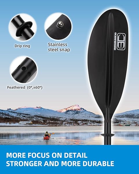 - OCEANBROAD Kayak Paddle 90.5in/230cm Alloy Shaft Kayaking Boating Canoeing Oar with Paddle Leash 1 Paddle, Black offers reliable performance and quality- MADE TO LAST: This kayak paddle is with high-quality aluminum alloy shaft (1.1mm shell thickness) and fiberglass reinforced PP blade. The material combination ensures a stiff and made to last kayak paddle at a better price. Its a perfect choice for starters and intermediate kayakers