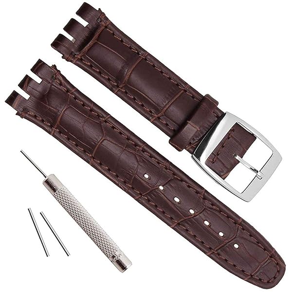- OliBoPo Alligator Grain Cow Leather Stainless Steel Buckle Watch Band Strap for Swatch (19mm, Brown) provides reliable performance and quality- - Length: 115mm + 75mm | Thickness: 3-4.5mm- - Perfect fit for 19mm S-watch watch. Waterproof and lightweight, yet sturdy ideal for those with an active lifestyle.- - With hypo-allergenic silver plated stainless steel buckle.- - Use waterproof leather protection the bottom.