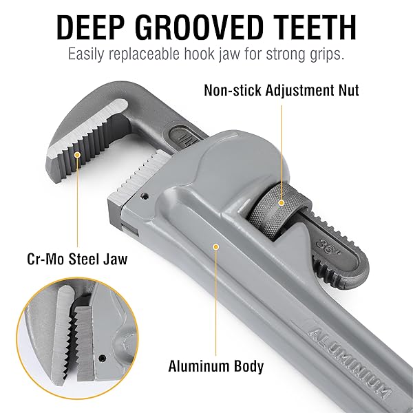 Buy Olympia Tools 36-Inch Aluminum Pipe Wrench 01-636 - Durable & Lightweight Gray Tool for Plumbing Needs