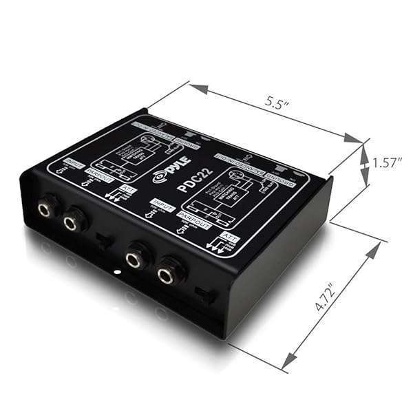 * PYLE-PRO Premium Direct Injection Audio Box - Passive DI Unit Hum Eliminator w/ Input Attenuator to Connect Guitar & Bass - 1/4 Inch Impedance Transformer Connector to Balanced & Unbalanced XLR-PDC22 , Black: pylepro model : pdc22 1/4'' xlr direct box dual 1/4'' instrument to balanced & unbalanced (1/4'' xlr) direct box construction: all steel chassis ground lift: switch-able ground lift balanced output: 600 balanced xlr jack instrument input: 50k unbalanced ts jack parallel (link) out: 50k