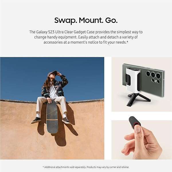 - Samsung Galaxy S23 Clear Gadget Phone Case, Protective Cover w/Grip, Kickstand, Premium Clarity, Detachable Mount for Accessories, US Version, EF-XS911CTEGUS, Transparent provides reliable performa...- SECURE GRIP & KICKSTAND: Looking for a multifunctional phone grip? You can use the Clear Gadget Case to get a more secure hold of your phone or as a sturdy kickstand for hands-free viewing