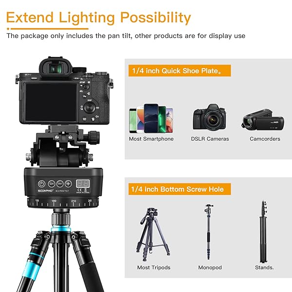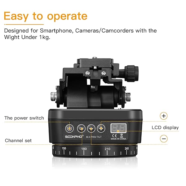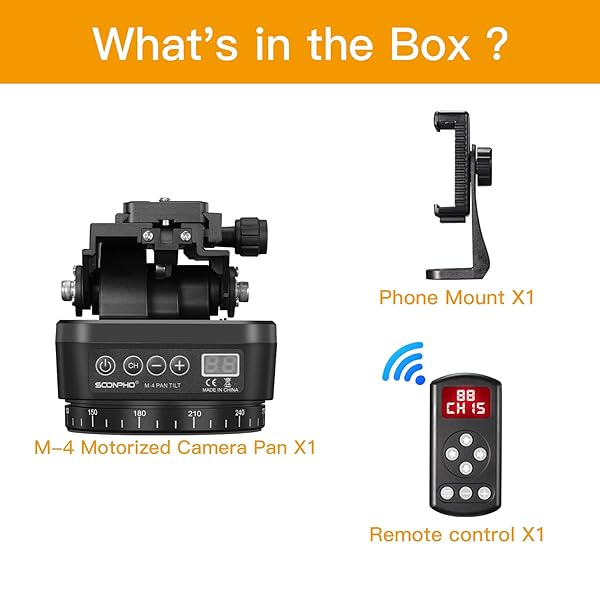 - Soonpho M4 Motorized Rotating Panoramic Tripod Head, Remote Control Pan Tilt Head with Remote Control and Mobile Phone Clip for DSLR Cameras, Camcorders, Smartphones, Tripod provides reliable perfo...- Support Motorized Rotating Panoramic Shoots, Providing a Wide Range of Shooting Horizens. Designed for Smartphone, Cameras/Camcorders with the Wight Under 1kg.