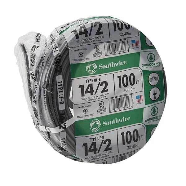 - Southwire 13054226 14/2 UF W/G Hundred' Wire, Gray, Hundred Ft provides reliable performance and quality- Coated in a sunlight resistant jacket that is flame retardant, moisture, rust, and corrosion resistant- Primarily used in direct burial applications, such as underground feeder to outdoor lighting in apparatus, exposed or concealed wiring in damp, moist, wet, dry, and corrosive locations- UL Listed