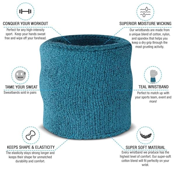 - Suddora Wrist Sweatbands, Absorbent and Breathable Thick Cotton Bands for Working Out, Gymnastics, Basketball, Tennis, and Football, Multiuse Wristbands for Costumes and Cosplay (Pair) (Teal) offers reliable performance and quality