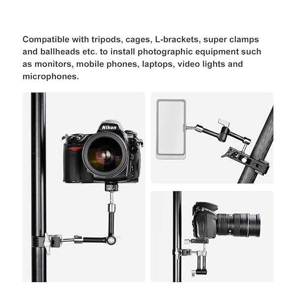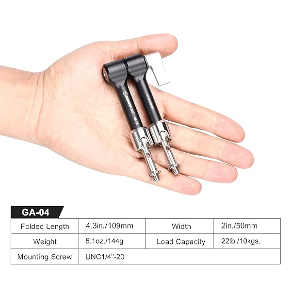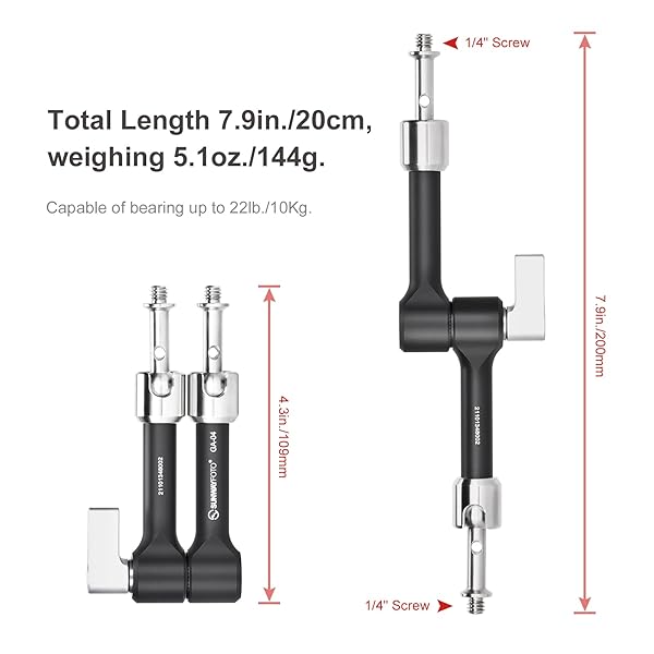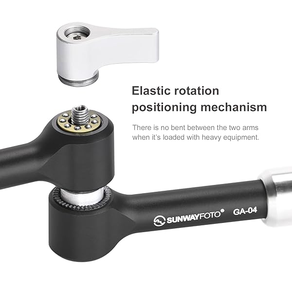 * SUNWAYFOTO GA-04 Magic Articulating Arm Camera Mount 8.0"/200mm Load 22lb(10KG) with 1/4" Thread Screw: aero-space grade aluminum material * Elaborately CNC machined with high standard hard-anodized finish * Making it extremely durable * Stainless steel stress-bearing part * Which provides the GA-04 with higher locking strength and longer service life