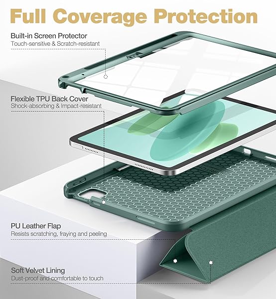 "Buy SURITCH iPad 10th Gen Case 10.9" (2022) - Shockproof, Screen Protector, Apple Pencil Holder, Tri-fold Stand, Auto Wake/Sleep - Green"