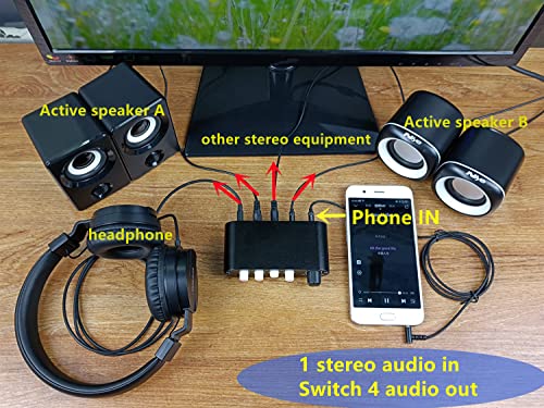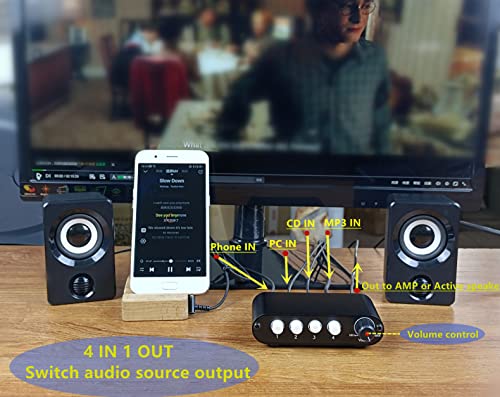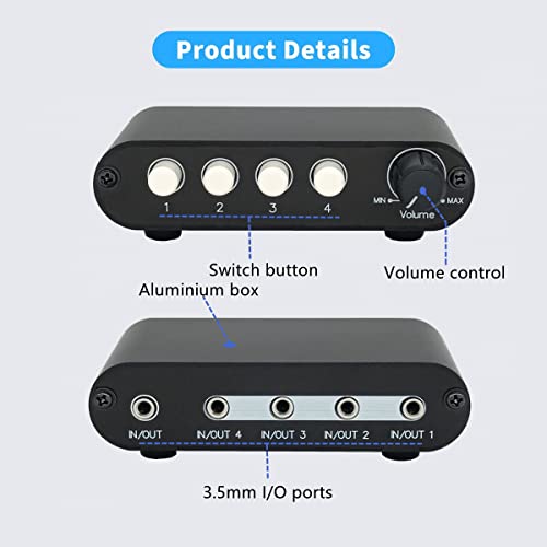 - TENEALAY 4-Way 3.5mm Stereo Audio Switch Input Signal Source Switcher Selector Splitter Box with line Volume Controller (4 in 1 Out / 1 in 4 Out) -MC41 provides reliable performance and quality- 4(1)-IN-1(4)-OUT 3.5mm AUX audio selector designed for customers having several audio sources and outputs, simple to use, plug and play, no power supply required- 4 in 1 out: Support up to 4 audio source inputs and select 1 audio source output