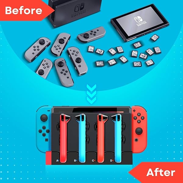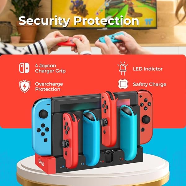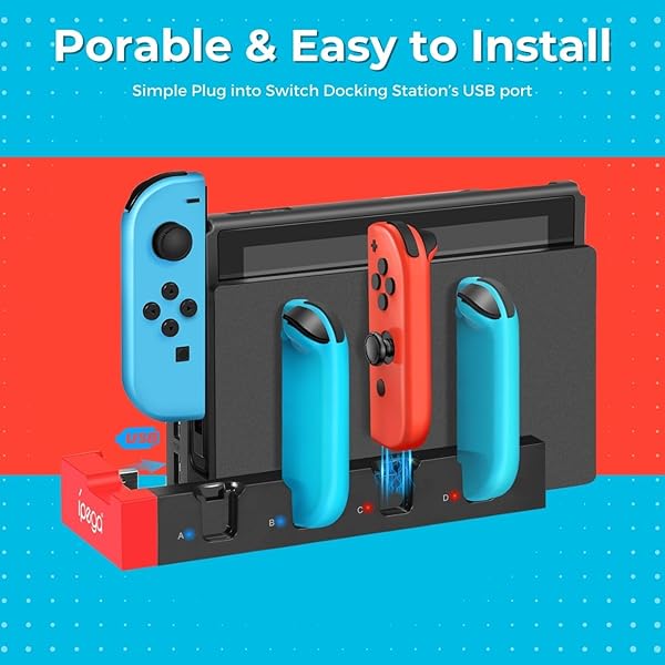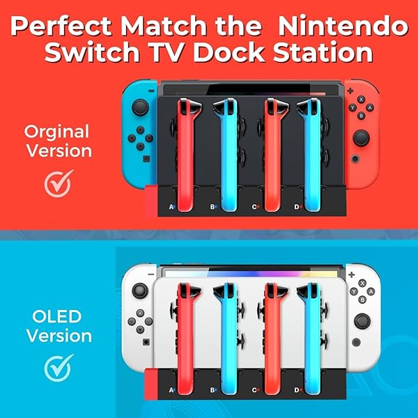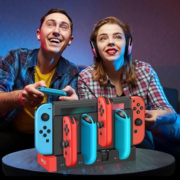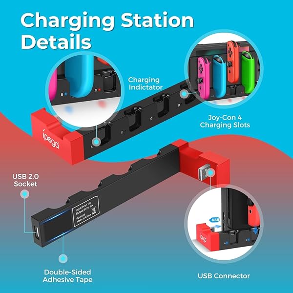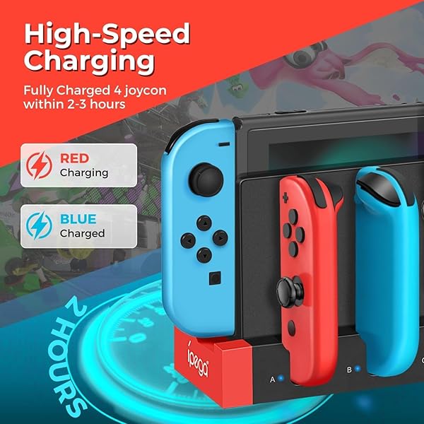 * TNP Switch Charging Dock for Nintendo Switch Controller - 4 Joy-Con Holder with LED Indicator, Remote Docking Stand Base Attachment (Black, Red): this item works great to charge both my switch unit and up to six joycons at a time * The bright lights go from red when charging to blue when fully charged so with a quick glance you can easily tell if the joy cons are charged * Specification: Dock Attachment for Nintendo Switch Color: Red And Black Material: ABS USB 2.0 Port 4 Joycon charging ports