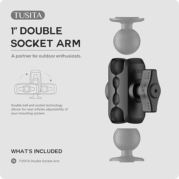 * TUSITA Double Socket Arm 1" - B Size Short, GPS Compatible, Vehicle Mount, Black, Aluminum, Adjustable, Rotatable: heavy dutydouble socket arm is made out of a strong composite material and works with all industry standard 1 inch / 25mm / b size ball adapters,low-profile design with an overall length of 2.38" and socket-to-socket length of 1.75" * COMPATIBILITYAttaches to any B size TUSITA ball component * Including mounting bases and device holders * Double ball and socket technology allows