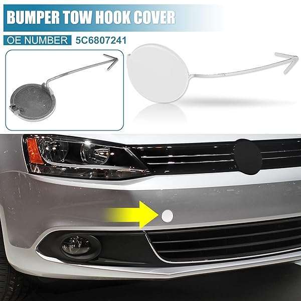* X AUTOHAUX Car Front Bumper Tow Hook Cover 5C6807241 for Volkswagen Jetta 2012-2014 Tow Hook Eye Lid Cover Trailer Cap White: front towing eye cover cap fits for volkswagen jetta 2011-2014 * Placement on Vehicle: Front * OE Number: 5C6807241 * Please make sure the form and OE number are the same as your old part * Durable Material: Made of plastic material
