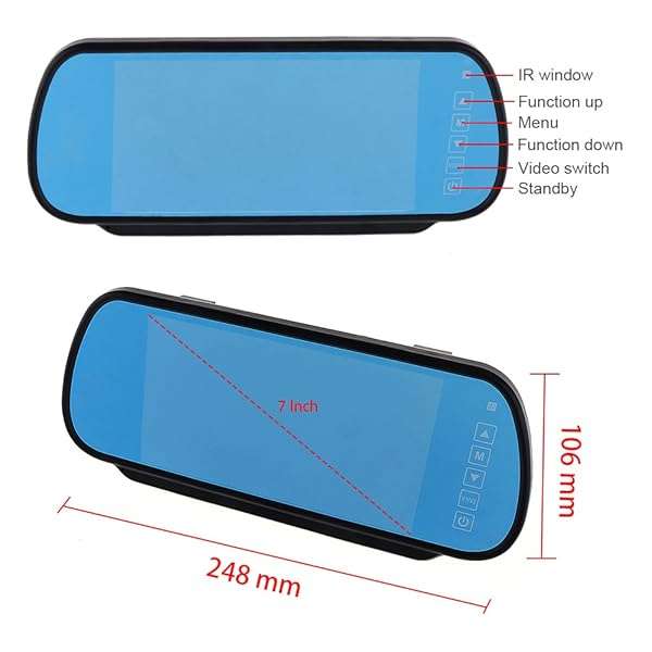- BW 7 Inch 16:9 TFT LCD Widescreen Car Monitor Car Rear View Mirror with Touch Button, HD 800(W)x 480(H) Resolution, Two Ways of Video input provides reliable performance and quality- The item is mainly used for car surveillance, car rearview.- 7 inch 16:9 TFT LCD widescreen rearview mirror monitor with 800(W) x RGB x 480(H) Pixels, and High quality PAL / NTSC TV system.