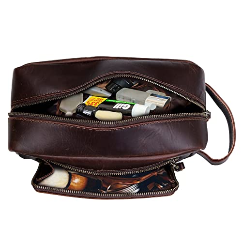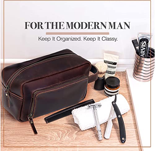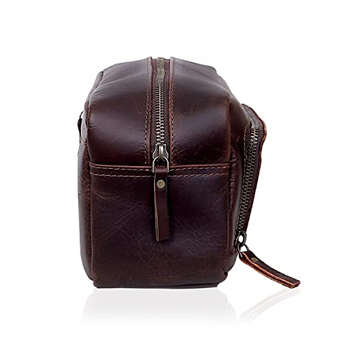 - Men's Toiletry Bag Leather Travel Toiletry Bag Dopp Kit for Men Shaving Bag for Travel Accessories 101 YEAR QUALITY REPLACEMENT WARRENTY: reliable performance and quality- **SPACIOUS AND VERSATILE - Double Zipper Closure Compartment | One- Measurements (L x W x H): approximately 9.3 x 5.0 x 4.3 inches- **STYLISH AND ELEGANT - Stylish & Luxurious Leather Toiletry Bag With- A must have for all travelers and an ideal gift for your family and
