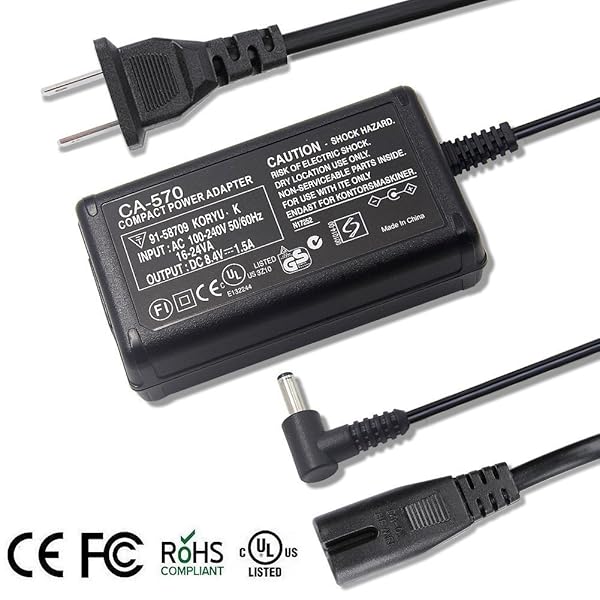 CA-570 AC Adapter Charger for Canon FS, HF, HG, HR, HV, XA, ZR Series - Fast Charging & Compatibility