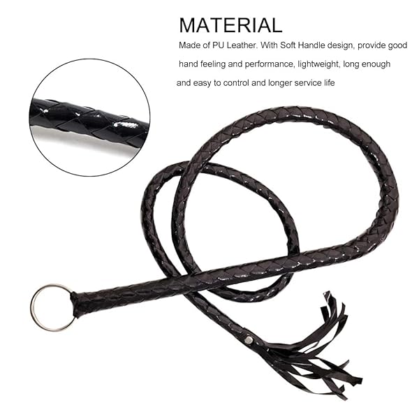 - CALIDAKA Faux Leather Black Whip Costume Whip Handmade Bullwhip, Whip Costume Accessory Horse Riding Crops Equestrianism Whips for Stage Performance Racing Cosplay Costume Accessories offers reliable performance and quality- Easy Store: With a hanging ring attached on the handle, the whip is easy for you to hang on the wall or other places you want- Design: Beautiful fine braided whip, nice short tassles design, looks delicate, make you unique and attractive