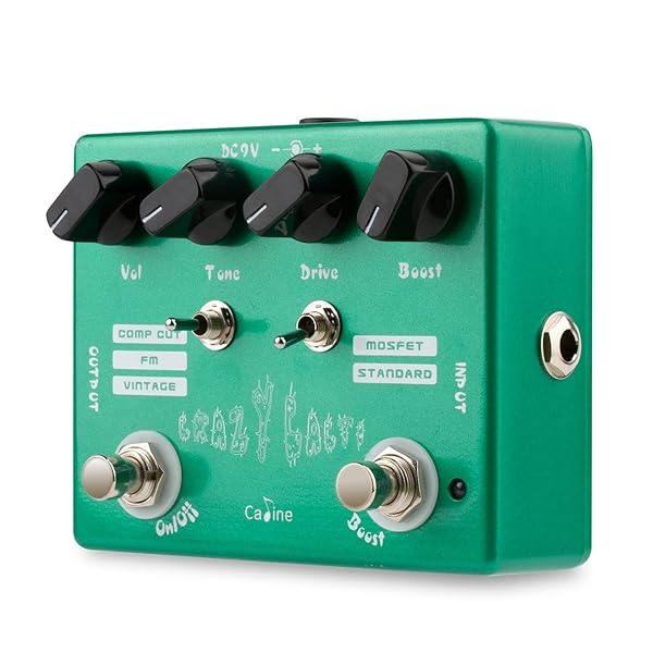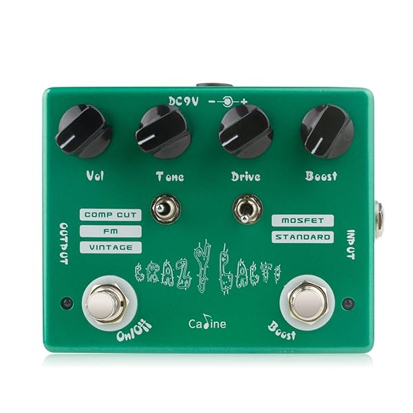 - Caline CP-20"Crazy Cacti" Overdrive Guitar Effect Pedal offers reliable performance and quality- Comp Cut, FM and Vintage modes, these provide a range of usable tones adding clean boost, crunch or remaining neutral respectively- The two way switch Mosfet and Standard create a more punchy or smooth overdrive- 2 footswitches, left one is to engage the Overdrive and the right one to add Boost- True Bypass design, with aluminum alloy casing