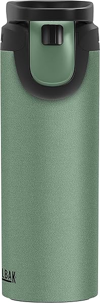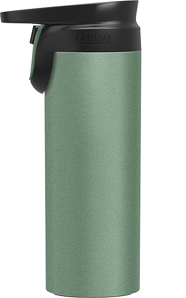 * CamelBak Forge Flow Insulated Stainless Steel Travel Mug Moss, 16oz: finally * A travel mug worthy of your cafe-inspired morning routine * Forge Flow's leak-proof cap and self-sealing one-handed drink lever work together with the vacuum-insulated stainless steel to keep drink temps right where you like them for hours * Without spilling a drop * The convenient free-flow lock button slides open for frequent sipping and easy cooling