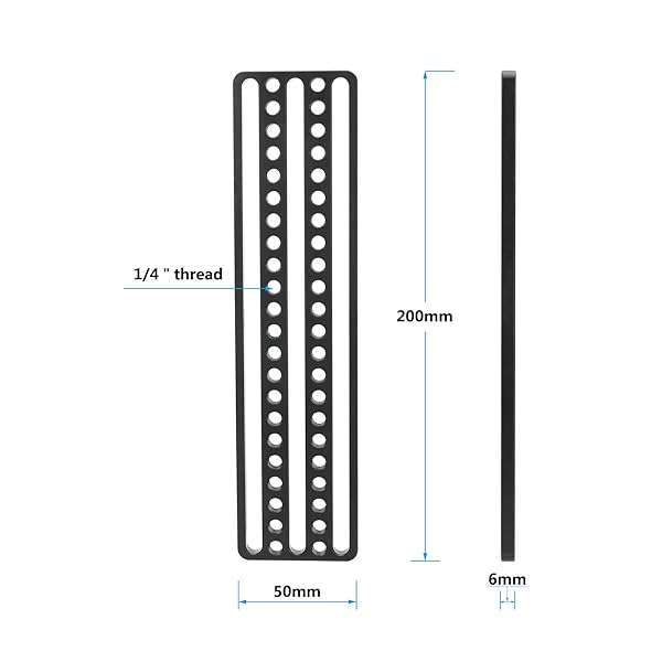 - CAMVATE Extended Cheese Plate Mounting Extension Light Weight with 1/4"-20 Thread Holes for Photographic Accessories - 3023 provides reliable performance and quality- Material: aluminum alloy, CNC-machined- Dimension: 200mm(L)*50mm(W)*6mm(H)- Array of 1/4"-20 mounting points available- Versatile mounting extension, light weight