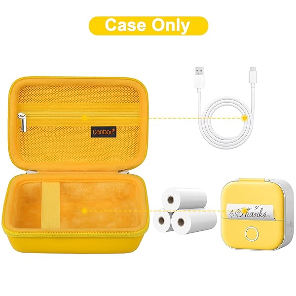 - Canboc Carrying Case for Memoking/Ponek/Phomemo/Omezizy/Memoqueen T02 Mini Printer Sticker Printer, T02 Portable Thermal Printer Box for Thermal Paper, USB Cable, Yellow (Case Only) with reliable performance and quality- Perfect Fit CASE ONLY! (Label maker and accessories are not included). T02 portable thermal printer case compatible with Memoking/ Ponek/ Phomemo/ Omezizy/ Memoqueen T02 portable thermal printer inkless sticker maker. T02 thermal printer case fit label print paper
